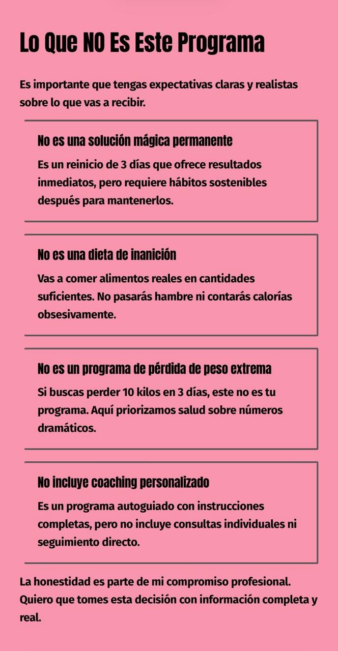 - Extensión opcional hasta 6 días para quienes deseen profundizar los resultados con un protocolo extendido.
